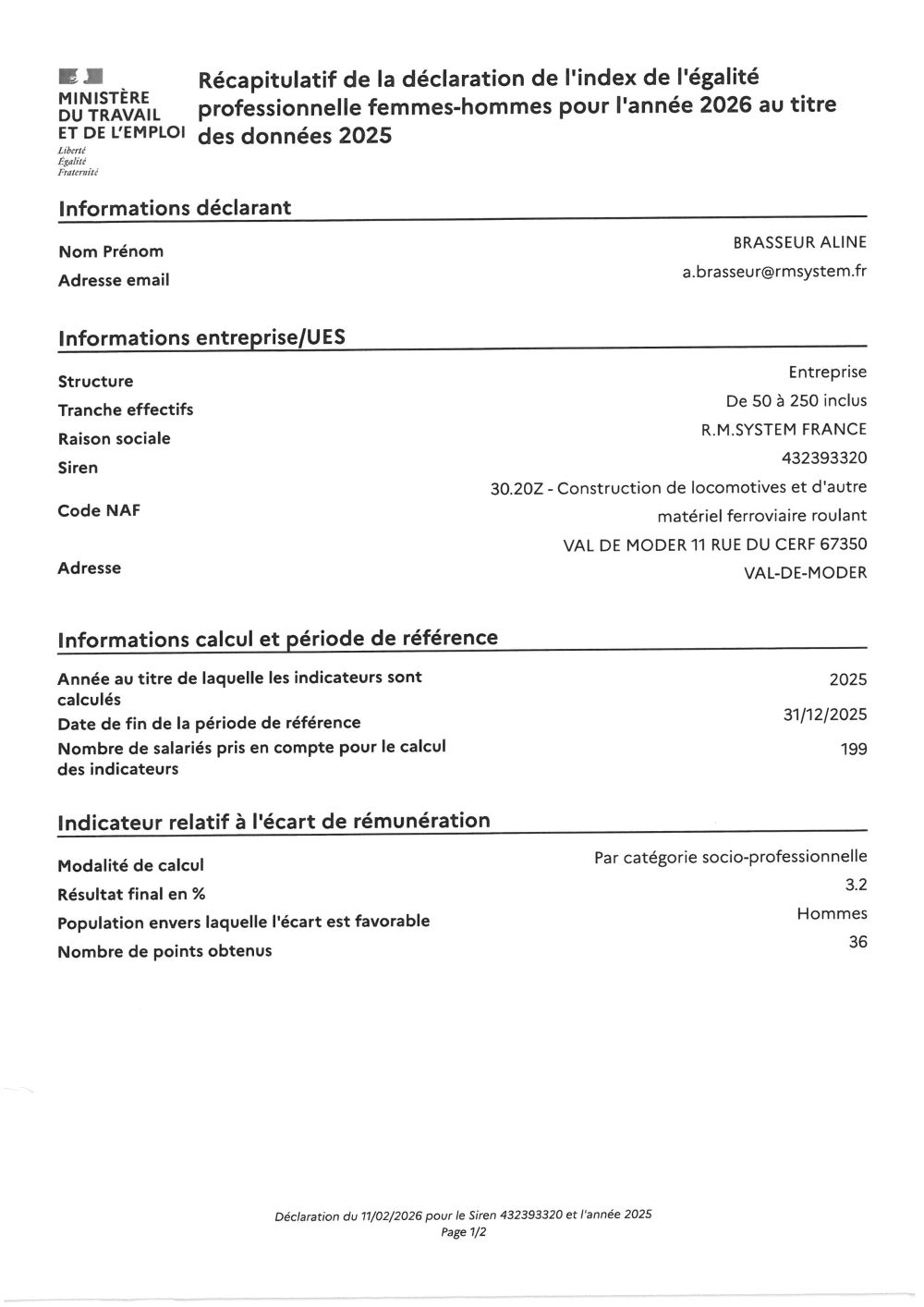 Index égalité Hommes-Femmes 2026