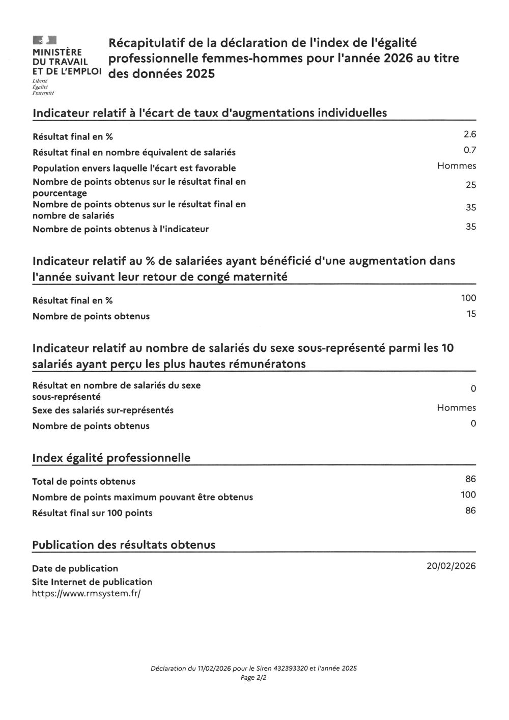 Index égalité Hommes-Femmes 2026